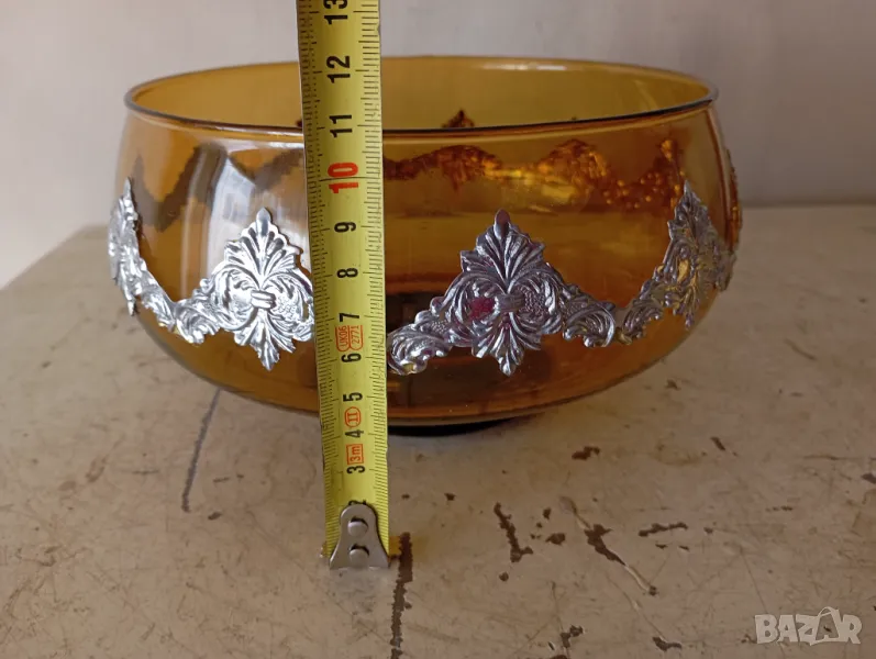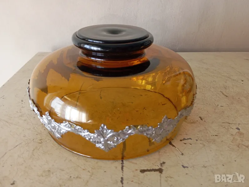 Стъклен съд с метални апликации.