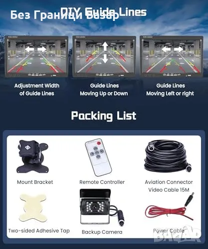 Нова 7" HD Камера за Заден Ход + Нощно Виждане и Водоустойчивост за кола