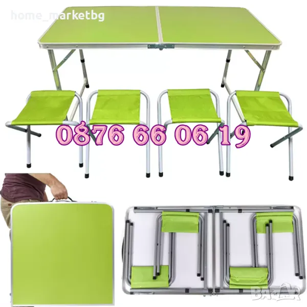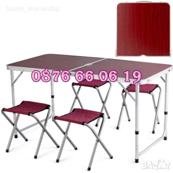 Къмпинг масата с четири стола е подходяща за цялото семейство. Удобство за целия сезон на открито в градината или на къмпинг.
