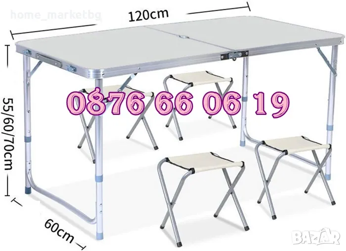 Къмпинг сгъваема маса с 120х60 см с 4 бр. столчета, градинска маса