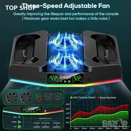 Нова Охлаждаща стойка за Xbox Series XBX със зарядна станция и RGB светлина