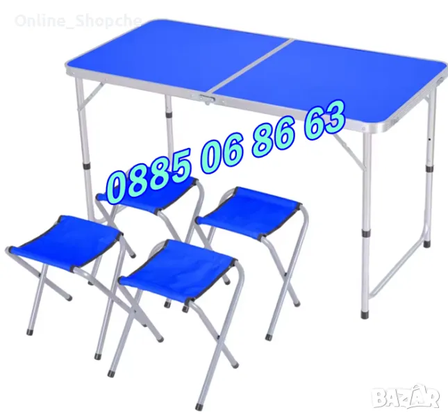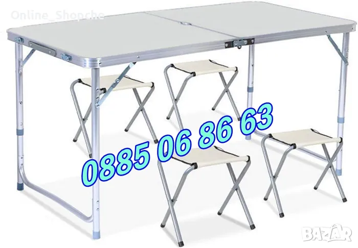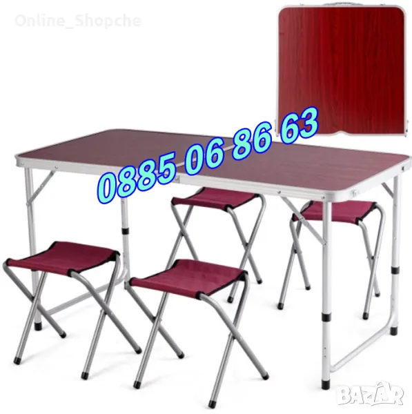 Сгъваема градинска маса 120х60 с 4 бр. столчета, къмпинг сгъваема маса → Обява 49409936