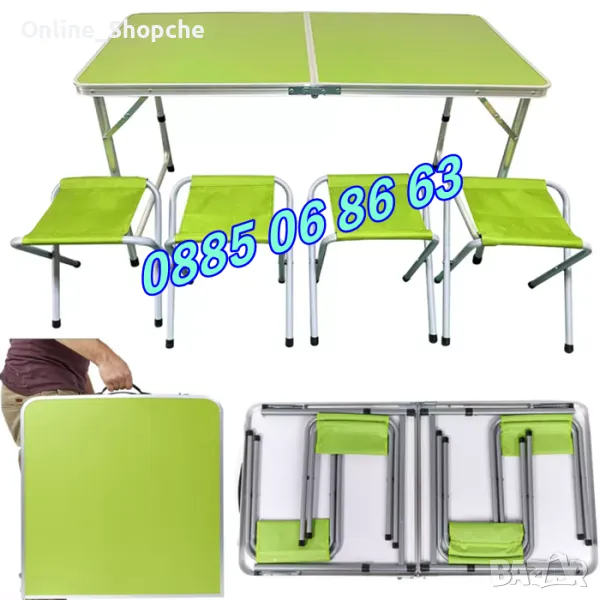 Сгъваема градинска маса 120х60 с 4 бр. столчета, къмпинг сгъваема маса → Обява 49409958