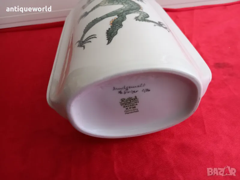 Royal KPM Много Красива Немска Ръчно Рисувана Авторска Силно Лимитирана Порцеланова Ваза "ДРАКОН". Произведени са само 96 тази е 2 та! Налични Маркировки и Името на Автора!Моля разгледайте добре снимките те онагледяват много добре предмета.
