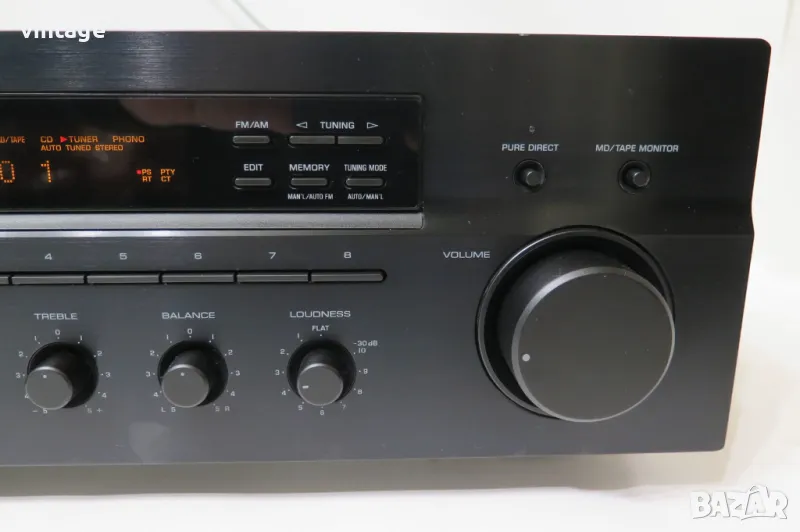 Стерео ресийвър, отличен технически, много добър външен вид. Цифров тунер с RDS и памет за 40 станции, корекции: bass, treble, variable loudness, pure direct. Impedance selector за озвучителни тела 4 или 8 ома. Дистанционно управление не е налично. Приложените снимки и видео са реални!