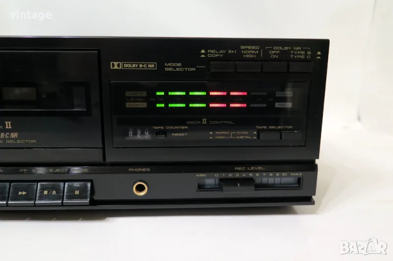 Дабъл стерео касетен дек, отличен технически и визуално. Dolby B/C, светодиоден индикатор на нивата. Приложените снимки и видео са реални!