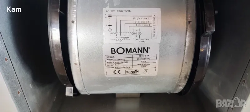 Абсорбатор BOMANN в перфектно техническо състояние, почистен без никакви следи от употреба.Много мощен с изходен отвор 150мм.Леко натиснато по филтрите, но са в перфектно състояние.