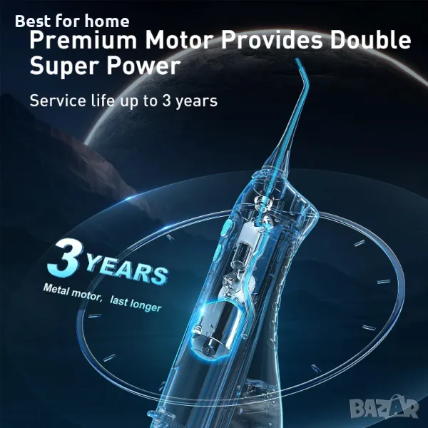 Водоустойчивост IPX7 и 3-годишна издръжливост: Нашата безжична водна дентална щипка може да се похвали с превъзходна водоустойчивост, позволяваща лесно почистване и безопасно използване по време на душ. Модернизираният му мотор осигурява по-ефективен двупоточен воден поток и 3-годишен живот, надминавайки подобни продукти