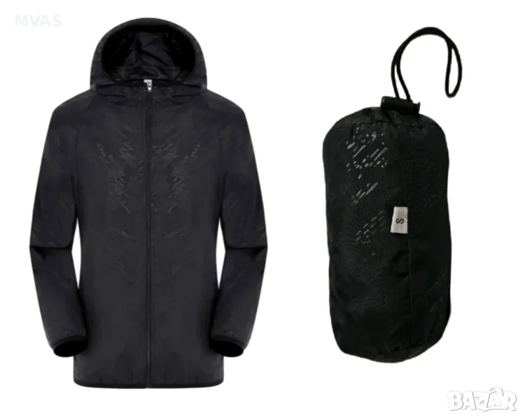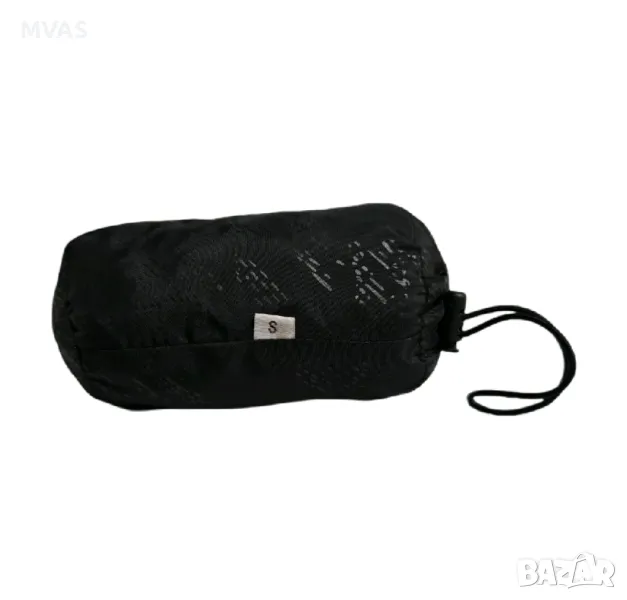 Много олекотен, сгъва се и се събира в малка платинена торбичка към него със стягаща се връзка, събира се лесно в раница, може да се закачи.