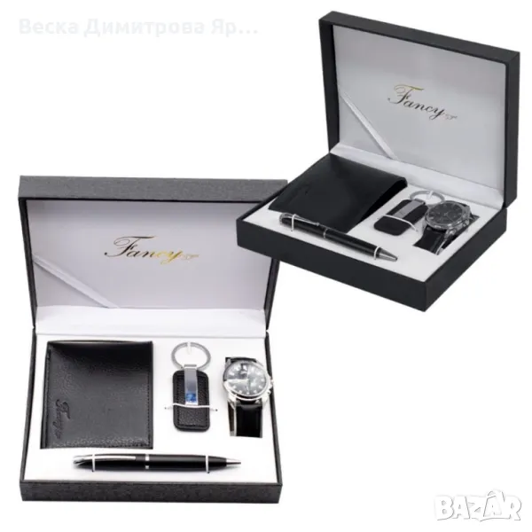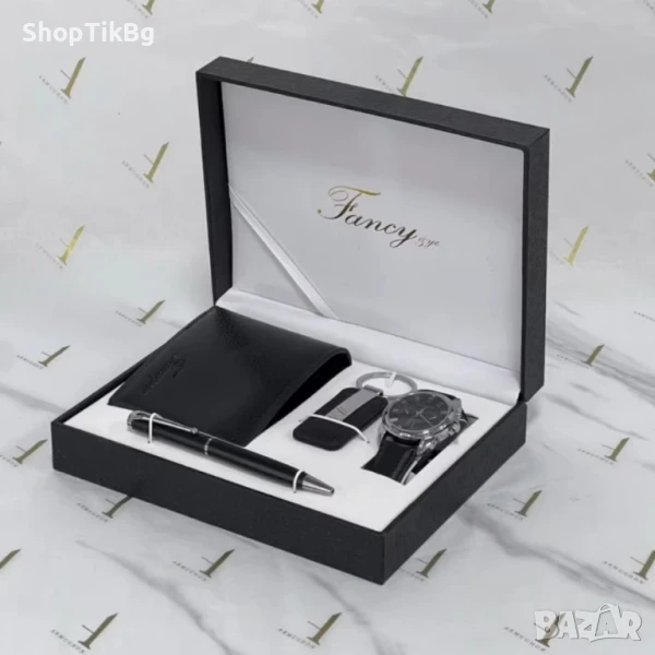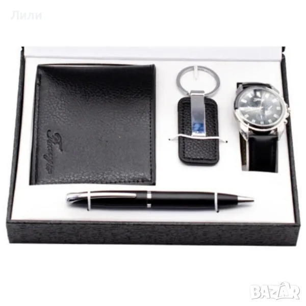 Елегантен мъжки комплект – Часовник, портфейл, химикал и ключодържател → Обява 49413391