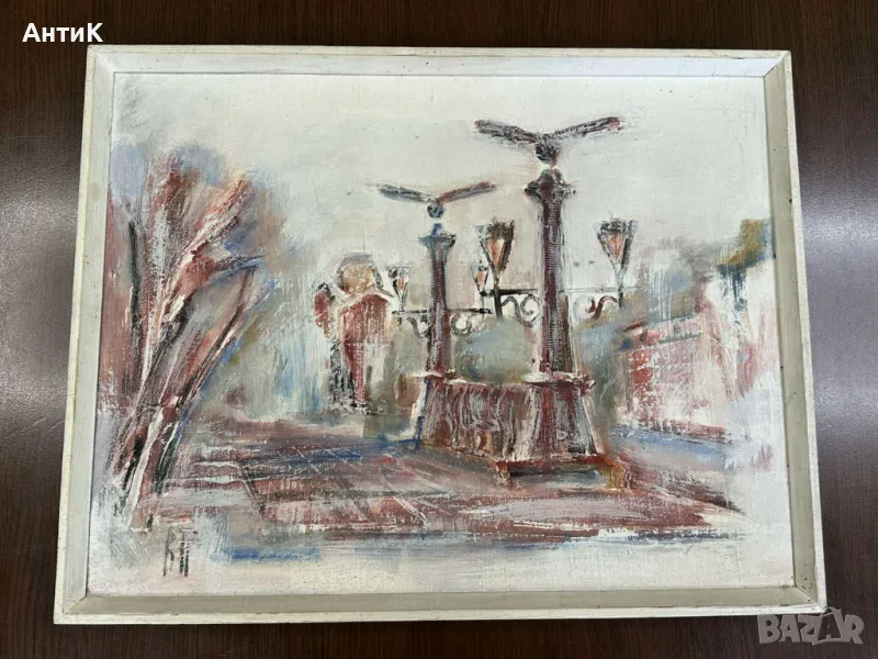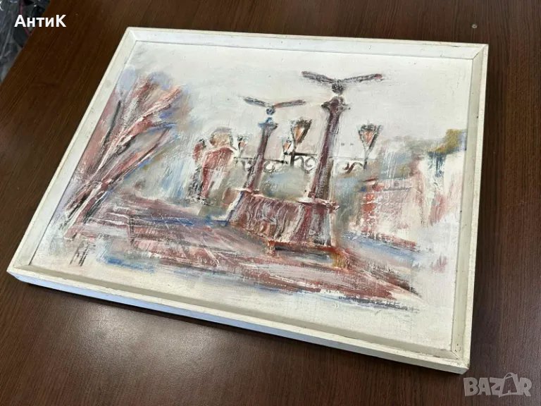 Картина на Венелин Петров "Орлов мост" от 1998 година. Маслени бои върху платно. Отлично състояние, с рамка.