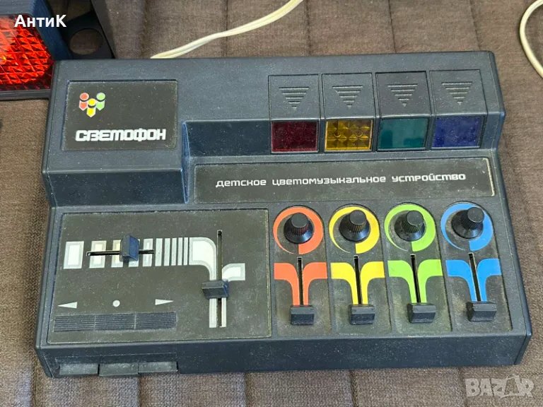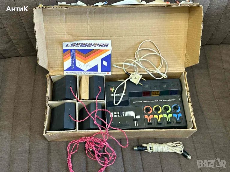 Съветска уредба "Светофон" , светомузика. Нова, не ползвана. Пълен комплект. Може да работи само със светлина, може да се свърже и с музикална уредба. В Ютуб има 2-3 видеа, на които е показано подробно как функционира.