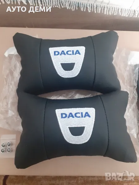Ликвидация!!!Последен 3 комплекта (от 2 възглавнички) налични , 4 комплекта калъфи( 1 комплект е 2 калъфа) и 5 комплекта (1 коомплект- 4 капачки за вентили на гуми) .Продавам нови хубави меки възглавнички за подглавник на автомобилна седалка на автомобил.Възглавничките са с изцяло мека еко кожа и бродирано лого на Дачиа Dacia .Калъфи за колан с бродирано лого на Дачиа.4 броя сиви капачки за вентили с лого на Дачиа.Цена за 2 броя възглавнички , 2 броя калъфи и 4 броя капачки за вентили на Dacia - 26 лв( намалени от 55 лв) .