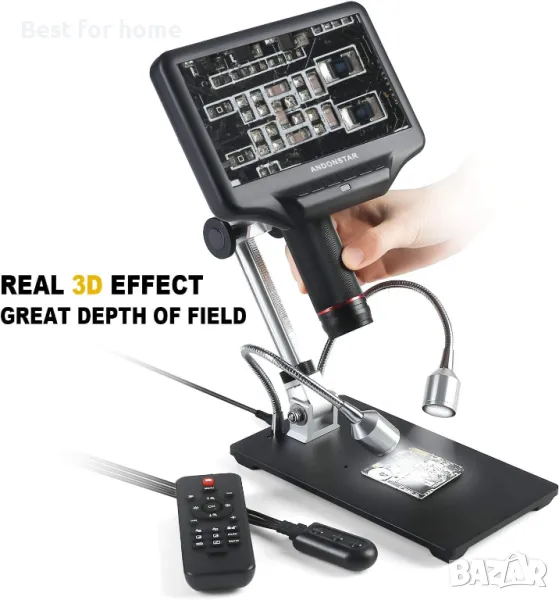 Andonstar AD407 3D HDMI запояващ цифров микроскоп с 4MP UHD и 7-инчов регулируем LCD екран USB видео микроскопи за ремонт на