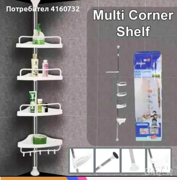 Мултифункционален ъглов рафт, стелаж, органайзер за баня → Обява 49414466