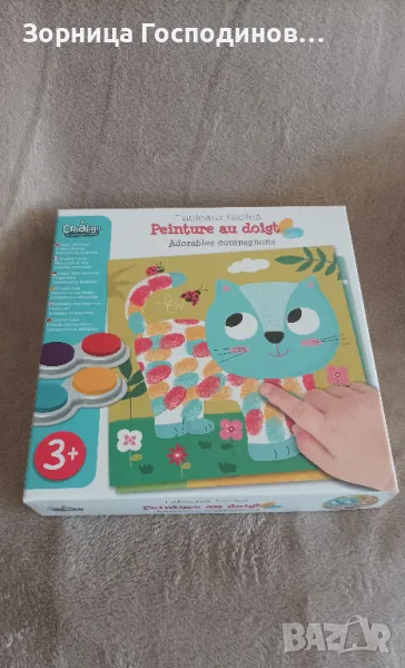 Продавам нови творчески комплекти на Créa Lign - рисуване с пръсти. С комплекта децата създават красиви картини, като нанасят боята с пръсти. След като картините са завършени, те могат да се поставят на предоставения красив статив.