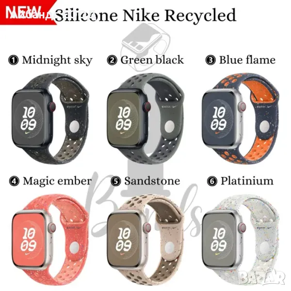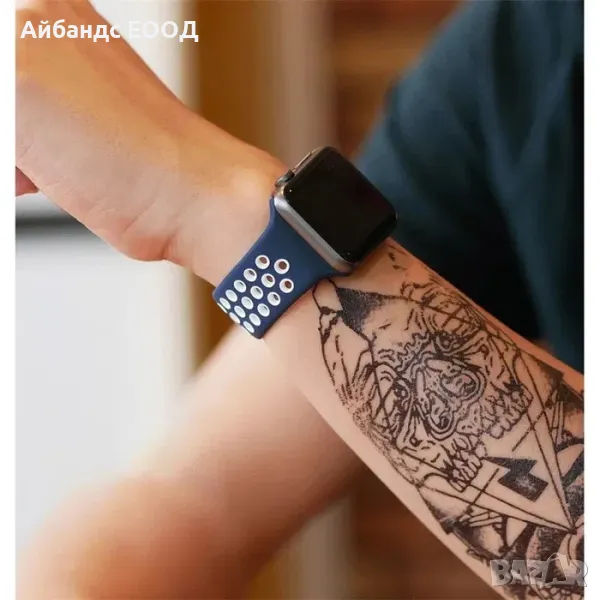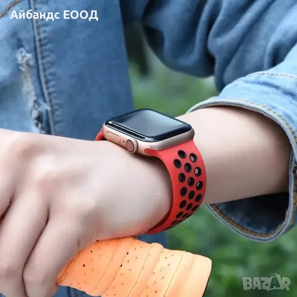 eпъл апъл apple смарт smart уач уоч айуач iwatch часовник chasovnik каишка kaishka банд siliconova silicone silikon silikone силиконова силикон гумена gumena найк спорт sport спортна sportna dupki dvucvetna dwucwetna дупки двуцветна
