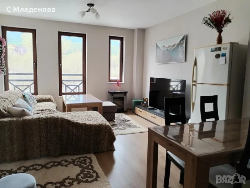 В апартаментите има високоскоростен интернет, 2 бр. смарт телевизори в двете стаи, фурна, керамични котлони, голям хладилник, пералня, голям разтегателен диван, 2 маси /ниска и висока/, голям гардероб, много огледала, отопление – инфрачервени конвекторни радиатори, които са закачени на стените като картини, бойлер и сешоар в банята, матрак магнифлекс, прекрасна гледка към планината.