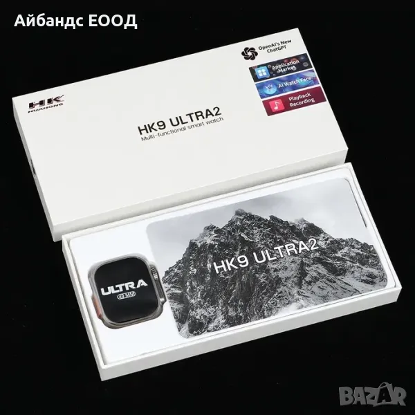 Ключови думи: smart watch HK9 смарт уоч у часовник chasovnik ocean band black colour черен цвят cwqt cvqt cvyat iwatch apple ultra ултра епъл аппле апъл