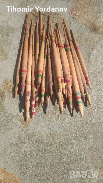 Стари дървени вретена,здрави и запазени ,в реално почти отлично състояние .За украса и декорация.Различни по размери, от 0,27 см до 0,40 см.Цена за брой 3 лв и 4 лв, според дължината.