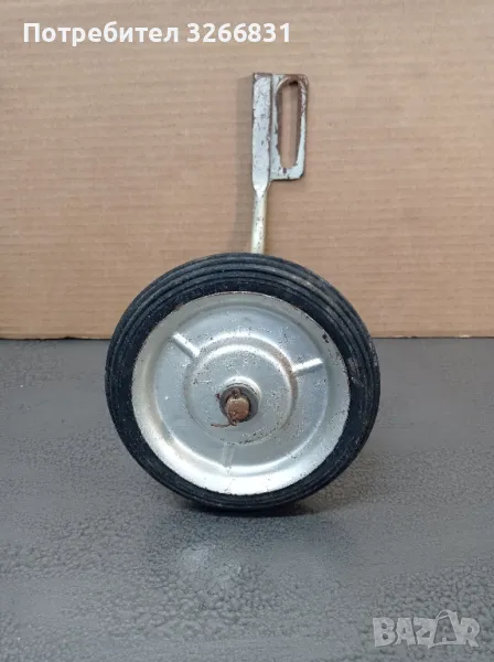 помощното колело е от стар полски велосипед "Универсал" , колекционерски предмет, за жалост не мога да открия втората бройка, забутал съм го някъде, но сигурно ще излезе
