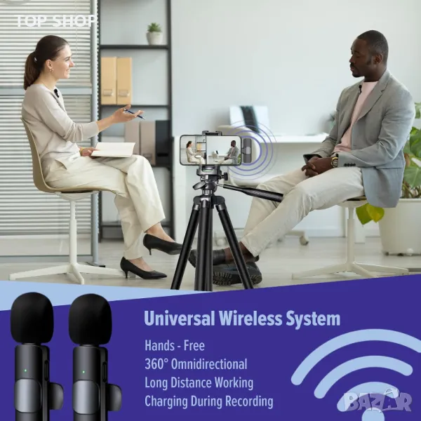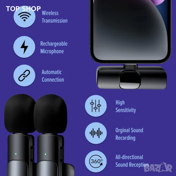 Безжични микрофони ASILEX, революционизиращи аудиозаписа с ориентиран към клиента дизайн. С безпроблемна функция plug-and-play, този петличен микрофон се синхронизира без усилие с IOS устройства, елиминирайки необходимостта от допълнителни приложения или добавки. Създателите на съдържание в социалните медии се радват! Насладете се на подобрено качество на звука с подкаст микрофона ASILEX, включващ 2.4G чип за намаляване на шума с изключително ниско забавяне, осигуряващ кристално чист звук дори в шумна среда. Перфектен за влогове, интервюта, стрийминг на живо и др. Специално проектиран за iPhone, този