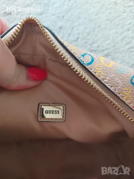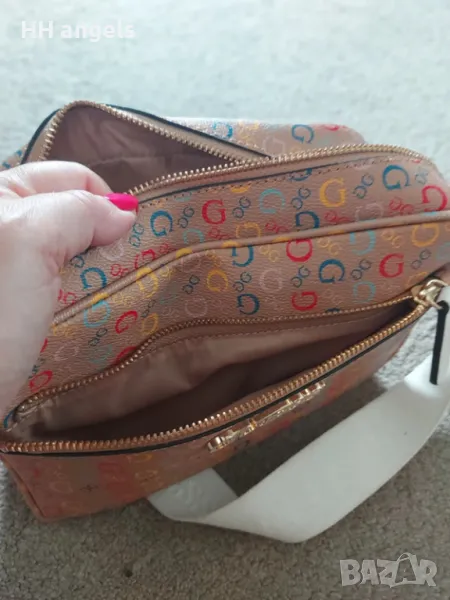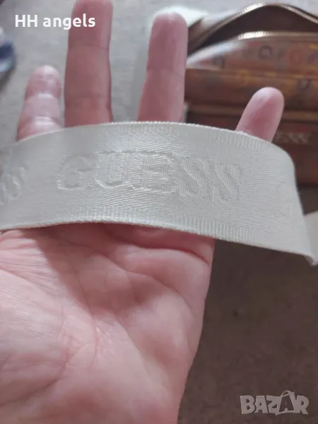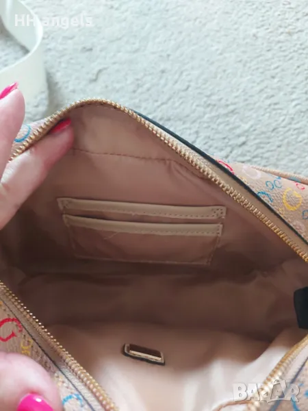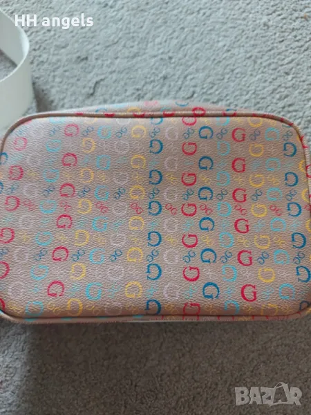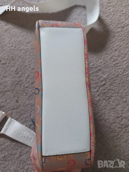 Чанта на Guess в бежово,носена неколкократно, с нормални следи по ъглите(протърквания),с крос боди лента,извяло с логото на бранда.Грам надраскване няма по фронталното лого.Размерите и са 23.5 ширина,височина 15 см и дъно 7см:)Цената е крайна и не подлежи на коментар.За гр.Варна с възможност за лично предаване.