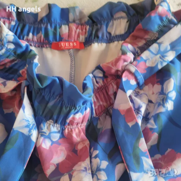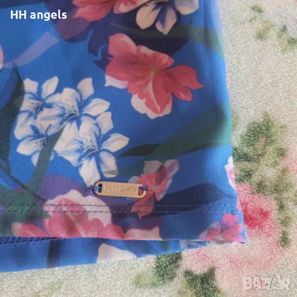 Guess нови флорални панталонки,закупени от чужбина(не се предлагат в България).С размер,страхотна материя,с ластик и коланче на кръстта,с етикети.Обиколка талия 70 см и има възможност да се разтегне до 104 см.Дължина на панталонките 40 см.