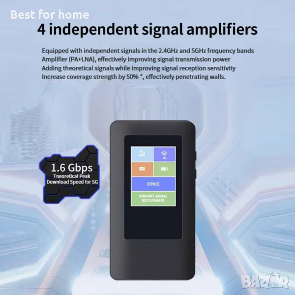 Мощна производителност: Оборудван с водеща платформа MTK5G 7nm TIANJI 700, той осигурява изключително бърза процесорна мощност и стабилна връзка за задачи с голямо търсене. Двубандов WiFi: Поддържа 2,4 GHz и 5 GHz ленти Дълготрайна батерия: Батерията с голям капацитет поддържа продължителна употреба без често зареждане Пълна съвместимост: Поддържа 3G, 4G и 5G ленти, осигуряващи свързаност по целия свят Стилен дизайн и удобство: Оборудвано с RGB осветление, устройството има изискан и стилен външен вид и поддържа SIM карти с възможност за гореща смяна, което го прави гъвкав и удобен за използване.