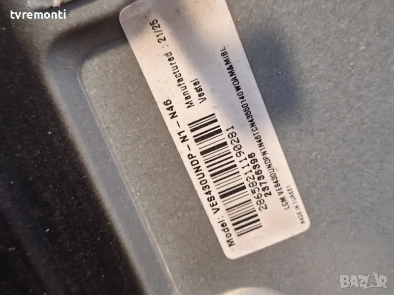 NEO модел LED-4330TU FHD със счупен дисплей VES430UNDP-N1-N46 тесвана от нашия техник Ремонт на всички марки съвременни телевизори