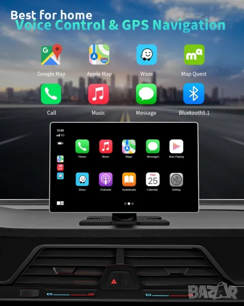 ✅【Онлайн карти и GPS в реално време】: 9-инчовият преносим екран на Apple Carplay осигурява прецизно местоположение в реално време и GPS навигация без забавяне. Позволява ви да използвате популярни приложения за карти като Google Maps и Waze, за да предоставите препоръки за маршрут в реално време за задръствания и промени в платното. Тази GPS навигационна система може да използва най-новите GPS данни на смартфона за навигация в реално време без чести актуализации.