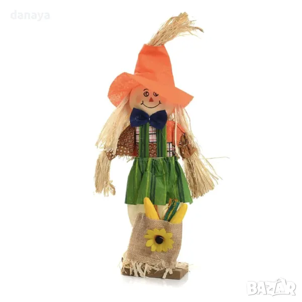 Декоративна фигура „Сламено човече“ с торбичка, пълна с царевица – 33 см