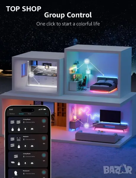 Интелигентната LED лентова лампа Lepro S1 е оборудвана с технология за осветление LightGPM AI, която й позволява да генерира динамични светлинни теми, които отговарят на вашите емоции, команди и специфични сцени. Тази 5-метрова лента съдържа 150 светодиода и предлага осветление MagicColor, което показва няколко цвята едновременно, добавяйки жизненост към всяко пространство. Персонализирайте цвета на 25 специфични сегмента за персонализирани ефекти. Приложението Lepro+ подобрява функционалността с функции като осветление, генерирано от изкуствен интелект въз основа на изражения на лицето и гласови указания, което позволява на светлините да отразяват вашето настроение или да реагират на изговорени команди. Освен това функцията LightBeats синхронизира светлинния дисплей с музика, идеално за партита или игрални сесии. Съвместима с Alexa и Google Assistant за гласов контрол, тази лента поддържа цялостно управление на приложения за задаване на графици, групов контрол и споделяне на достъп до устройството със семейството. Монтажът е лесен със залепващата му подложка. Обърнете внимание, че тази LED лента не е водоустойчива и не може да се удължава или реже.