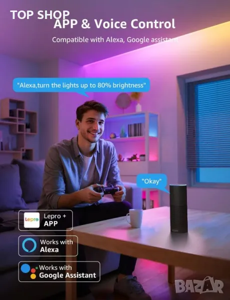 Lepro S1 Smart LED лента, 5M 150LEDs Работи с Alexa, Google Assitant, Bluetooth и WiFi App Control