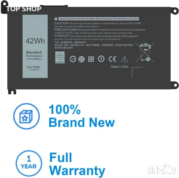 Съвместим номер на част - YRDD6 0YRDD6 1VX1H 01VX1H VM732 0VM732. Моделите лаптопи Dell Inspiron 7586 на тази продуктова страница са съвместими с 3 модела батерии: YRDD6(42Wh 3 клетки), WDXOR(42Wh,3 клетки)33YDH(56Wh 4 клетки). Моля, отворете задния капак на вашия лаптоп, за да проверите оригиналния размер и капацитет на батерията, преди да направите поръчка.