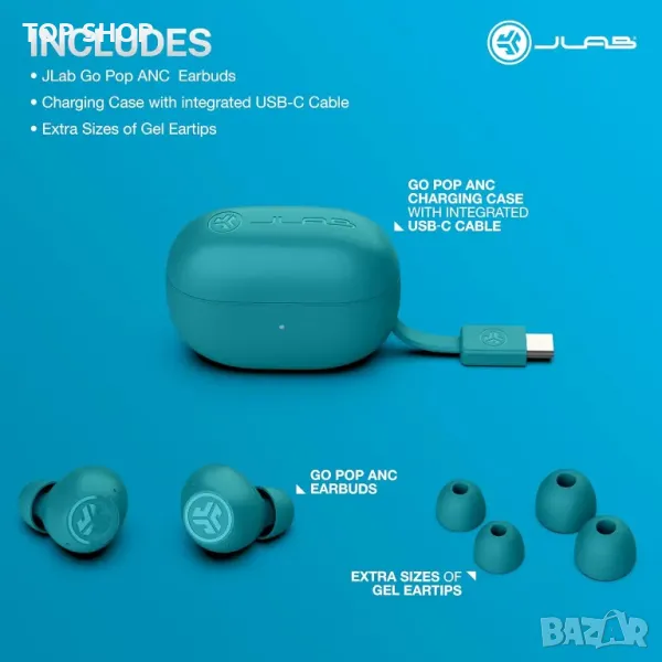 JLab Go Pop ANC Smart активни слушалки с шумопотискане, Bluetooth с микрофон, IP55