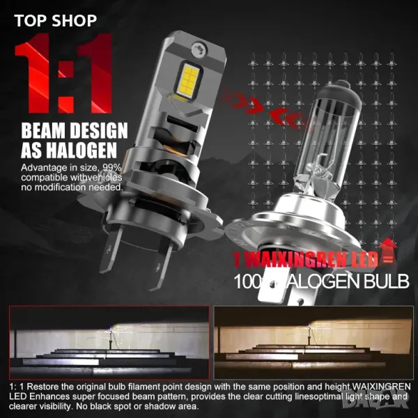 Ключови думи: WAIXINGREN H7, LED крушка, фарове, 60W, 26000LM, 6500K, студено бяло, опаковка от 2, H7, автомобилни Powersports чипове, високоскоростен охлаждащ вентилатор, интелигентен IC драйвер, висока мощност.