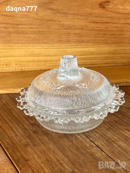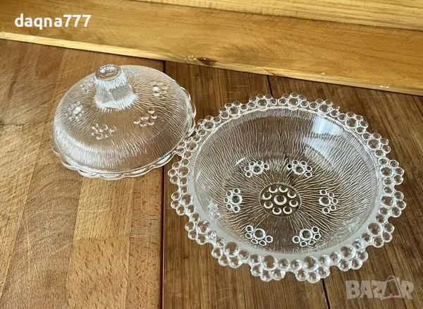 Masserini Barocco Glass - кутия за бонбони, стъклен съд. Италианско стъкло, ретро, ​​60-те години. Височина 6 см, диаметър 11 см. Много добро състояние.
