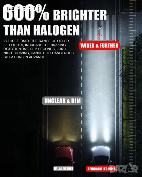 LED крушката за фарове Afibraru H7 предлага 600% повече яркост от халогенните крушки, доставяйки 20 000 лумена 6000K студена бяла светлина за подобрена нощна видимост и безопасност. С дизайн 1:1, съответстващ на халогенни крушки H7, тези безжични, plug-and-play крушки не изискват допълнителни адаптери, което позволява бърза, 5-минутна инсталация. Изработени от първокласен алуминий с безшумен вентилатор с 13 000 RPM, те осигуряват ефективно разсейване на топлината и живот от 60 000 часа. Степента на водоустойчивост IP68 гарантира надеждна работа при всякакви метеорологични условия. С 12 CSP чипа за безопасен модел на лъча без тъмни петна, те са съвместими с 99% от превозните средства благодарение на вградената CANBUS система.