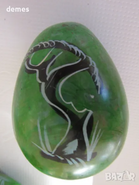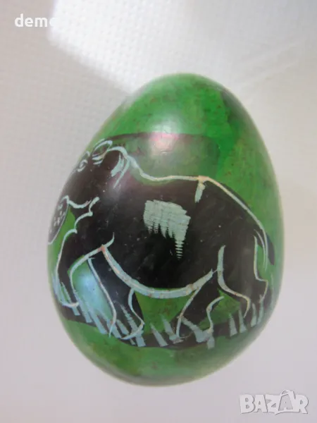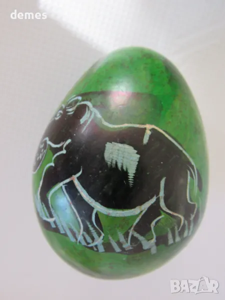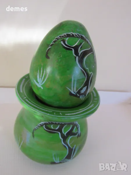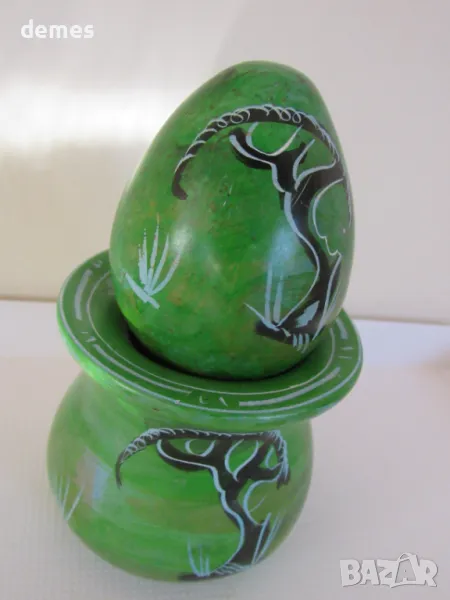 Декоративно яйце с поставка, изработени от сапунен камък.