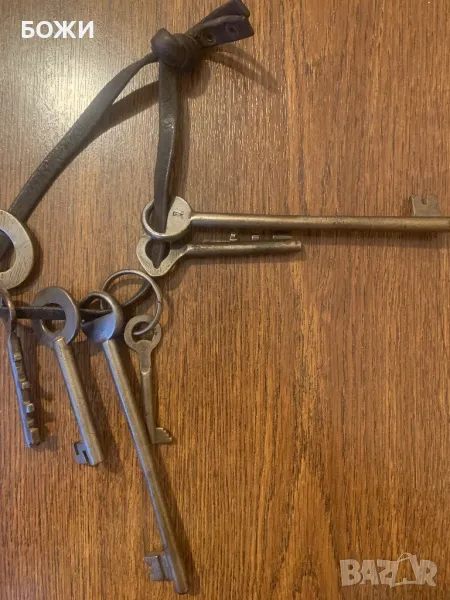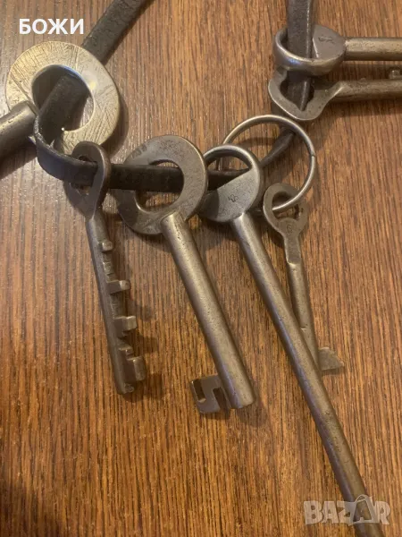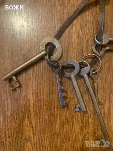 Продавам рядък комплект от автентични ръчно ковани ключове, датиращи от 18-ти век. Изработени са от желязо, с характерни форми и детайли, използвани за стари каси, порти, шкафове или дори затворнически килии.