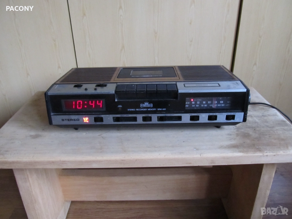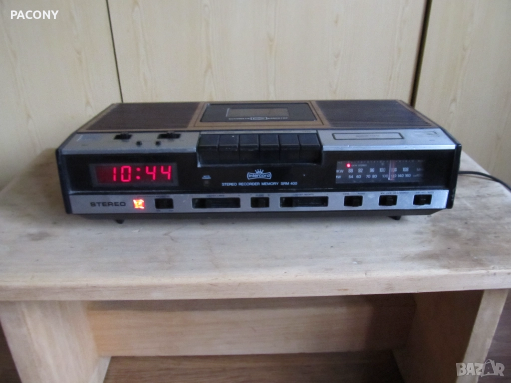 Интересен модел на фирмата INTERCORD - Германия.Стерео радио часовник - комбинация с касетофон.Има доста функции и всичко си му работи и свети.На UKV обхват хваща всички станций. Почистени са му потенциометрите и не пращи.На касета не знам дали работи. Цената не коментирам.Лично за Русе или предплата по куриер.