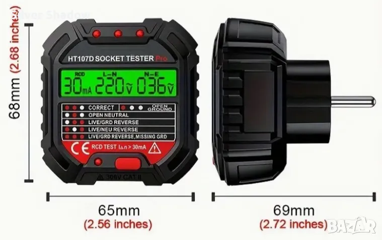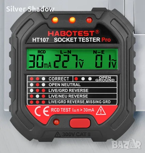 Уред за тестване на Розетки за AC Напрежение, Тест за RCD и Нулева Линия на Земята, снимка 1 - Други инструменти - 49421075 Уред за тестване на Розетки за AC Напрежение, Тест за RCD и Нулева Линия на Земята, снимка 2 - Други инструменти - 49421075 Уред за тестване на Розетки за AC Напрежение, Тест за RCD и Нулева Линия на Земята, снимка 3 - Други инструменти - 49421075 Уред за тестване на Розетки за AC Напрежение, Тест за RCD и Нулева Линия на Земята, снимка 4 - Други инструменти - 49421075 Уред за тестване на Розетки за AC Напрежение, Тест за RCD и Нулева Линия на Земята, снимка 5 - Други инструменти - 49421075 Уред за тестване на Розетки за AC Напрежение, Тест за RCD и Нулева Линия на Земята, снимка 6 - Други инструменти - 49421075 1/6