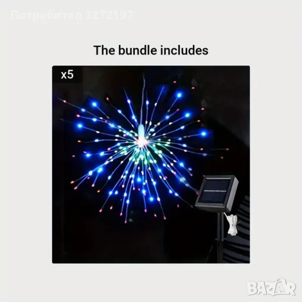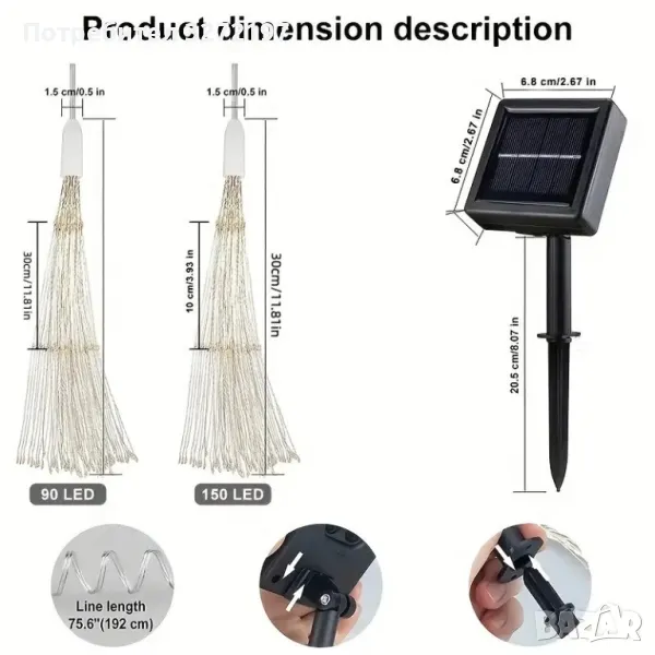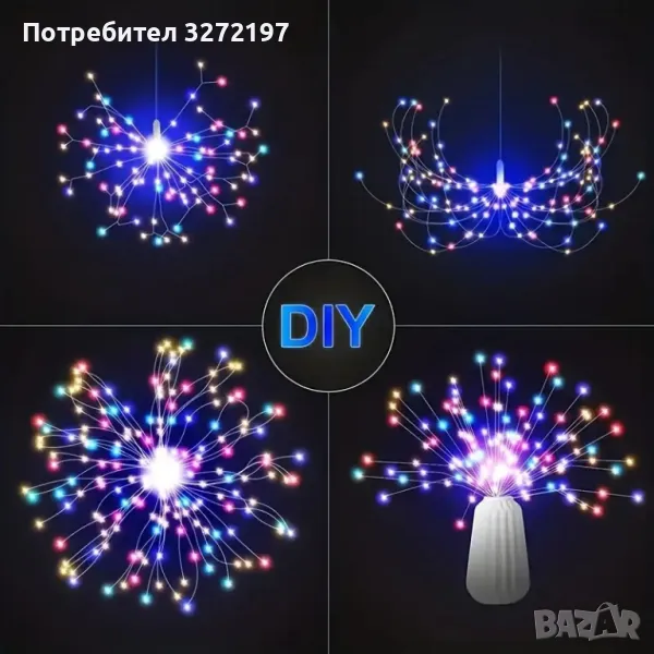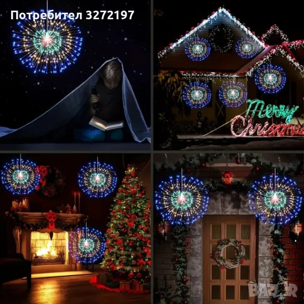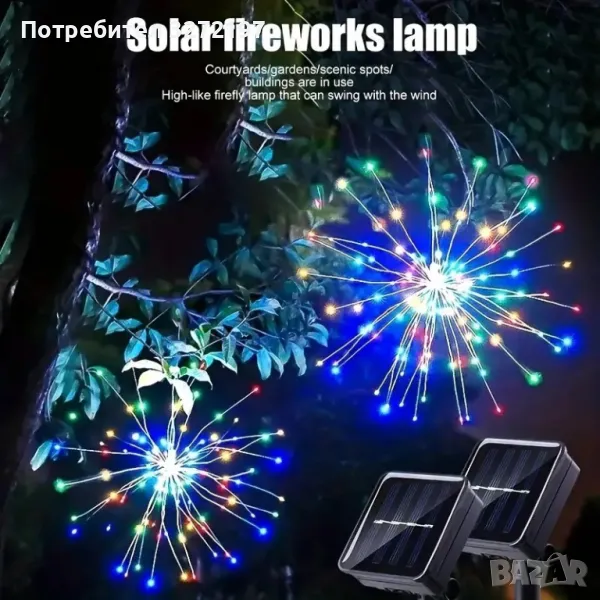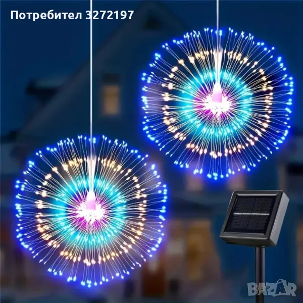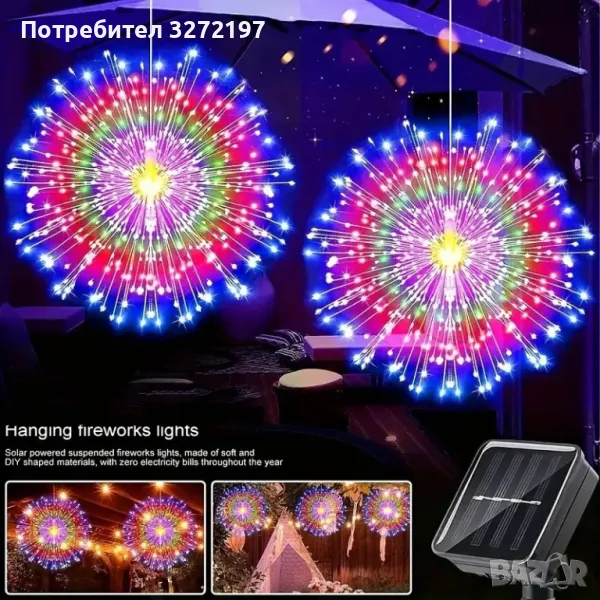 90-светлини захранвана със слънчева енергия,полилей за фойерверки Fairy Tale Star Burst, 8-режимна димируема висяща лампа,, подходяща за дом,сватба,барове, кафенета,хотели и др.