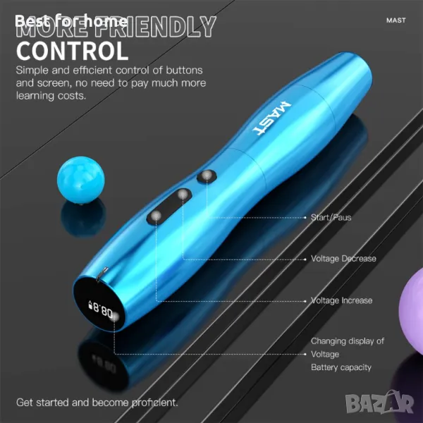 Удобен за потребителя - Оборудван с батерия от 1000 mAh, която може да издържи 4~6 часа, безпроблемно и гладко завършване на работата ви. Специално настроен ход и скорост за художници, ефективността на оцветяване е по-ефективна, намалявайки увреждането на кожата. Лесно и ефективно управление на бутоните и екрана.