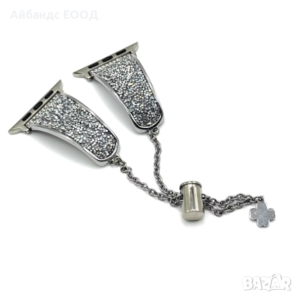 Тази стилна каишка от неръждаема стомана с камъчета комбинира елегантност и здравина в един аксесоар. Подходяща е за всеки, който иска да придаде луксозен и женствен акцент на своя смарт часовник. Тя придава блясък и изисканост, подходящa както за официални поводи, така и за ежедневна визия.