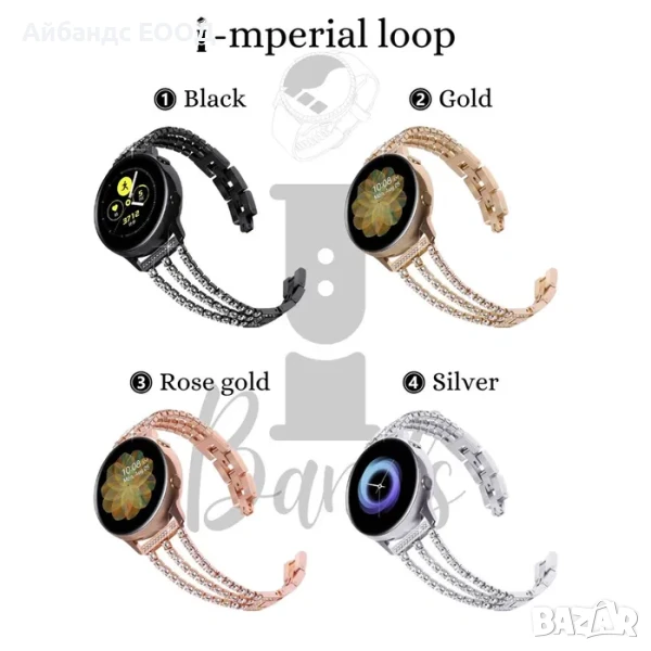 Ключови думи: силиконова silikonova silikon silicone kaishka каишка loop band strap huawei samsung garmin amazfit ticwatch смарт уоч уач watch smart часовник chasovnik хуауей самаунг амазфит гармин тикуоч, метални, metalni, luksozni, луксозни, златна zlatna rose gold silver роус голд силвър crystal кристални