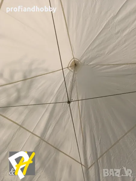 Покривът и страниците са от плътен и изключително здрав PVC материал 550 г/кв. м. Изцяло водоустойчив е осигурява високо ниво на слънцезащита. Лесен за подръжка и почистване.