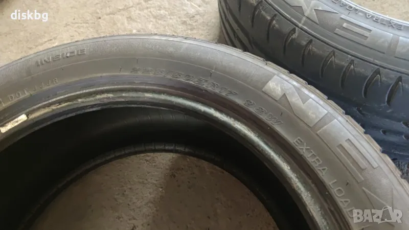 2 броя летни гуми NEXEN, модел N8000 98W с размери 225/50 ZR17 Dot 2417, грайфер 5мм. Гумите са предназначени за леки автомобили с товарен индекс 98 (натоварване до 750 кг) и скоростен индекс W (за шофиране с до 270 км/ч). Продават се комплект 2 броя. Цената е 65 лева за 2 броя (по 32,50 лева за гума). Лично предаване за град София.