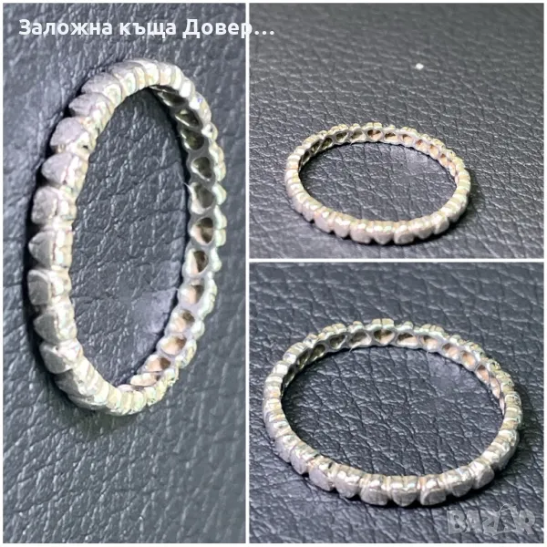 Пръстен тънък нежен с кристали -грамаж 5,58 гр диаметър вътрешен 18 мм -цена 35 лв